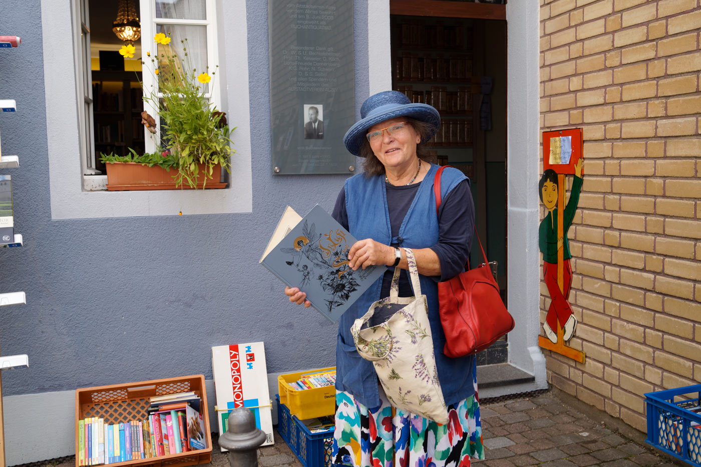 Das Team im Buchantiquariat arbeitet zu 100 % ehrenamtlich. Alle Bücher sind Spenden für den Altstadtverein, der mit dem Erlös das liebevoll restaurierte Biedermeierhaus erhält und viele andere Projekte in Alzey finanziert.